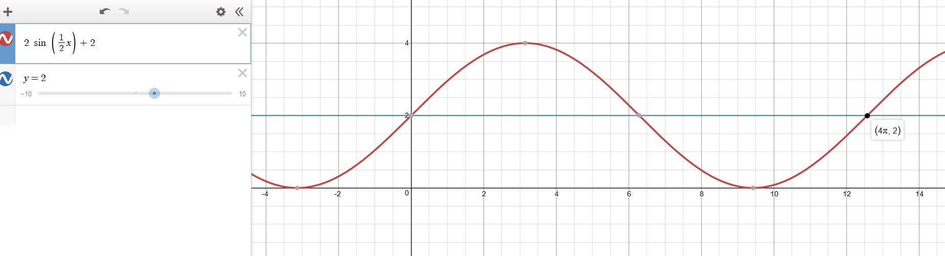 1/(4pi) = 1/period Period = 4 pi 2pi / 4pi = 1/2