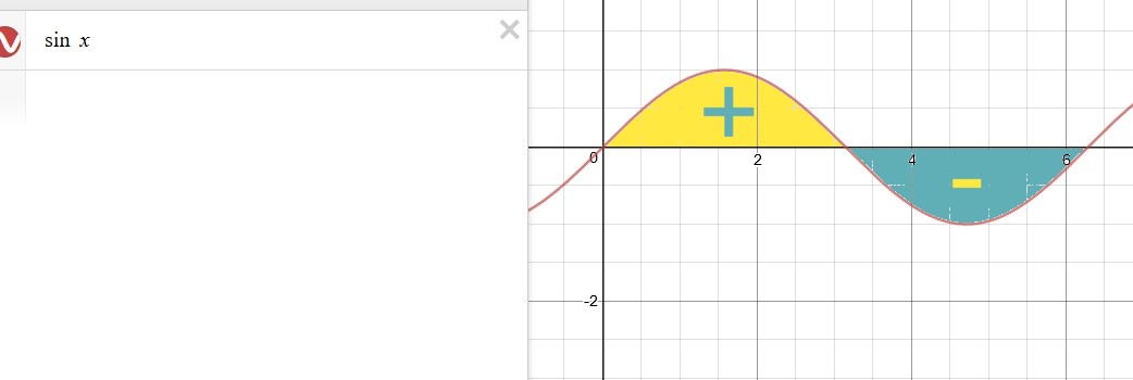 B. The positive and the negative areas cancel each other out......the midline is y = 0