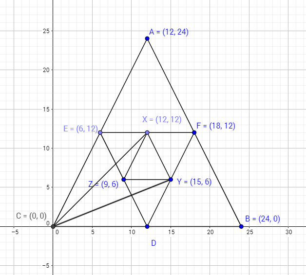 Now.....since in the original problem the area of XYZ is specified as 21 sq units....and the area of XYZ triangle in the diagram = 18 sq units...we can use a proportion to find the true area of CXY....so we have....