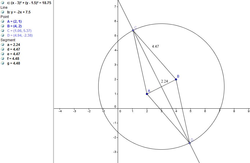 Construct a circle with a center of (3,1.5) and a radius of 2.5sqrt (3)