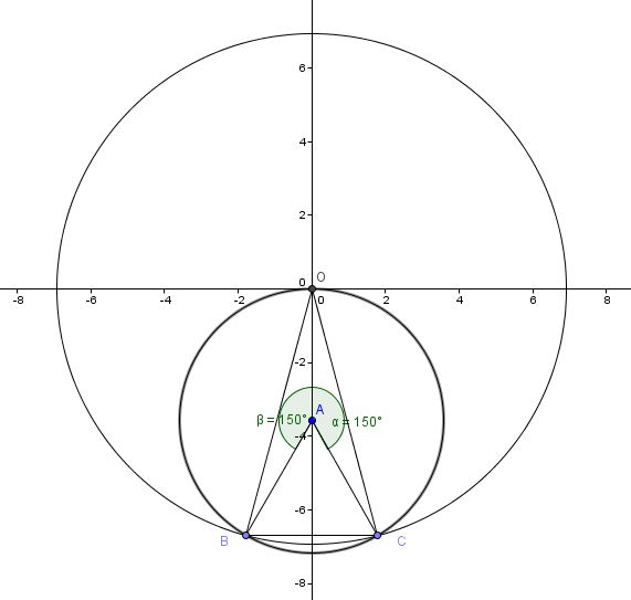 Then the equation for the circle with A as a center passing through the vertices of BOC is