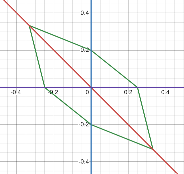 We see a cosine, so we hope to use the law of cosines to help us relate side lengths. However, we don't know the side lengths of these vectors. However, we have a very important symbol called the norm, \(||~||\), and this the distance to the endpoint to the origin. Remember, vectors aren't defined with position, so norm gives an effective way to represent length. Here is a graph: