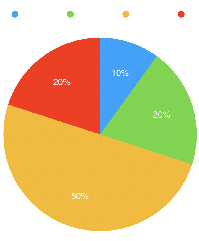 What you do is you take each type, see the percentage of the whole, and put it in. Eg. 25 is 25% since25/100 = 1/4 = 25%. Thus the bananas section would take up a quarter or 25% of the circle.