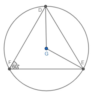 \(2 m \angle DFE = m\angle DGE \\ 2 * 60^\circ = m \angle DGE \\ m \angle DGE = 120^\circ\)